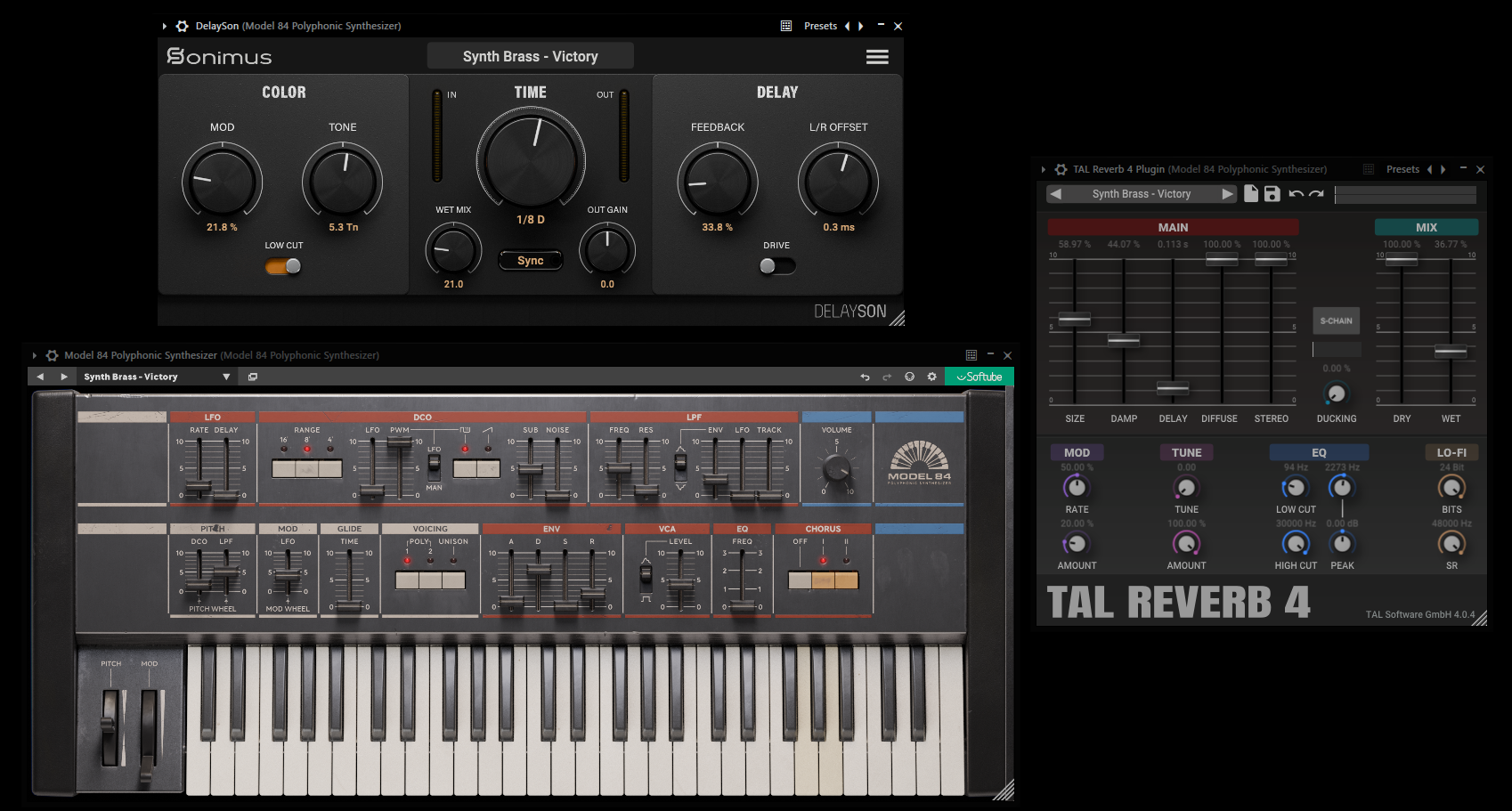 (Example: Model 84 Preset "Synth Brass - Victory" has a matching Delay and Reverb Preset)